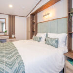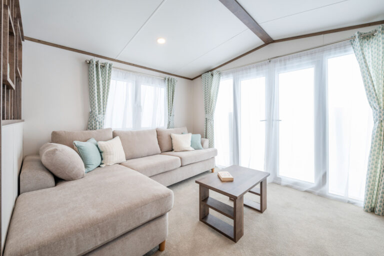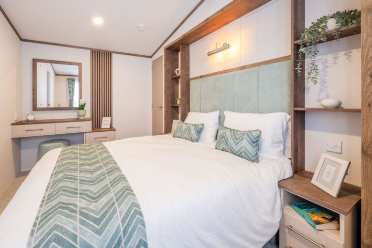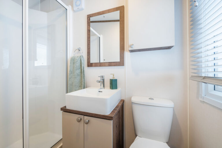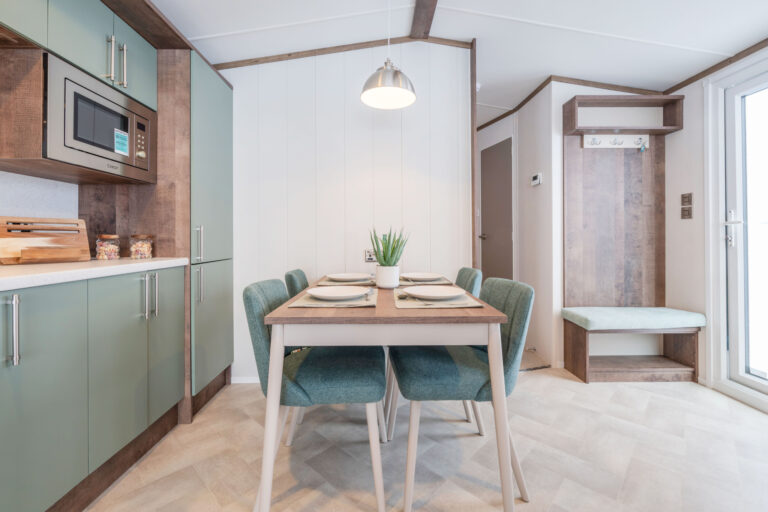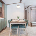 Externally, the Hemsworth makes a sophisticated statement. Clad in champagne aluminium with ultra modern, high performance white uPVC double glazing, it features front-facing French doors designed to open directly onto your private decking or patio. This “end-view” layout is specifically chosen to flood the living space with natural light and frame the breathtaking woodland views that Lodge Coppice is famous for.
